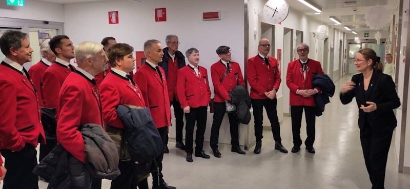 Am 25.12.2025 haben wir wieder unsere traditionelle Messe im Bürgerheim von Schlanders gestaltet und sind anschließend in das Krankenhaus von Schlanders gegangen, wo wir die Geburtenabteilung sowie die weiteren Stockwerke besucht haben und mit dem Lied "Stille Nacht" für weihnachtliche Stimmung gesorgt haben.