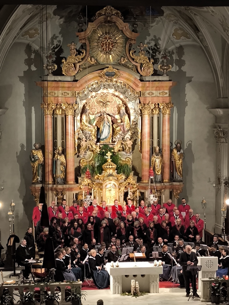 Jauchzet dem Herrn, alle Welt - das Motto eines besonderen Adventskonzertes, zu dem der Männergesangverein Schlanders mit Chorleiterin Sibylle Pichler , der Chor der Pfarrkirche Schlanders mit Leiter Jakob Raffeiner und die Bürgerkapelle Schlanders mit Leiter Georg Horrer am 13. Dezember in die Schlanderser Pfarrkirche eingeladen haben. Zum Besinnen und Innehalten angeregt wurde das Publikum in der voll besetzten Pfarrkirche auch mit besinnlichen Texten, die Franz Angerer vortrug. Dekan P. Mathew führte in den wahren Sinn von Weihnachten ein und segnete die Menschen. Die freiwilligen Spenden sind zur Gänze für einen wohltätigen Zweck in der Gemeinde Schlanders bestimmt.